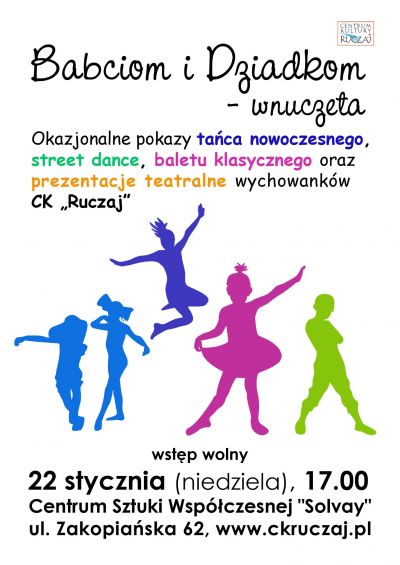 Występy odbędš się w sali widowiskowej Centrum Sztuki Współczesnej "Solvay", ul. Zakopiańska 62.