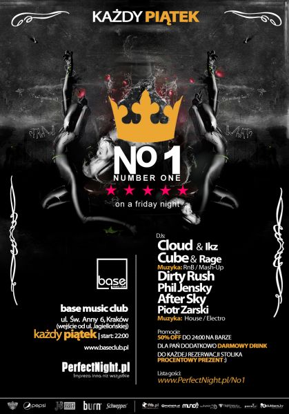 Uwaga! Pištkowe imprezy w klubie Base cieszš się wielkš popularnociš, w przypadku pełnego klubu obowišzuje płatny wstęp! Aby zapewnić sobie darmowy wstęp należy dodać się do listy goci lub wysłać probę o kartę PerfectNight (http://www.perfectnight.pl/card )