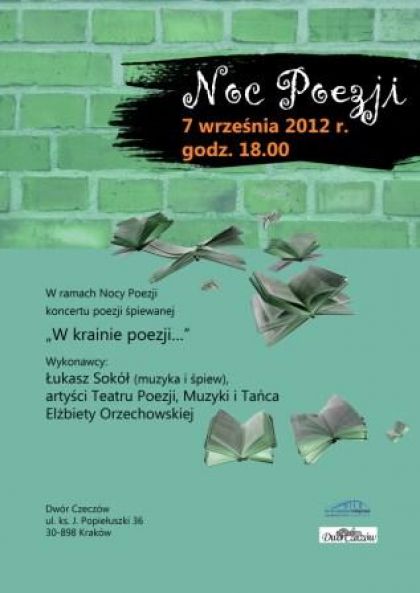 W ramach II Krakowskiej Nocy Poezji w Dworze Czeczów odbędzie się koncert poezji œpiewanej pt. „W krainie poezji…”