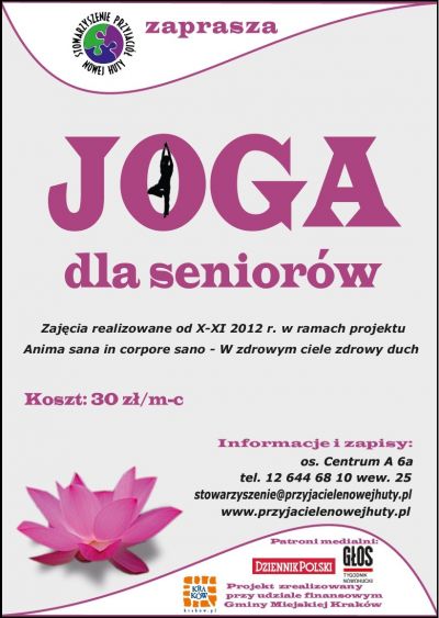 Od padziernika tego roku realizowany będzie projekt Anima Sana In Corpore Sano - W Zdrowym Ciele Zdrowy Duch, skierowany do seniorów z terenu Krakowa. Projekt obejmować będzie cykl zajęć z jogi na poziomie podstawowym i zaawansowanym, a także spotkanie ze specjalistš z zakresu zdrowia, połšczone z warsztatami na temat zasad właciwego odżywiania.