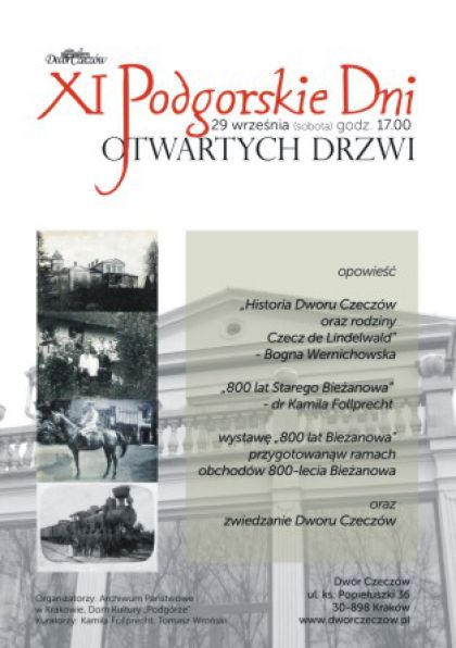 W ramach corocznych spotkań "Podgórskie Dni Otwarych Drzwi" Dwór Czeczów zaprasza na imprezy, które maja na celu przybliżenie wizerunku tego, krakowskiego zabytku.