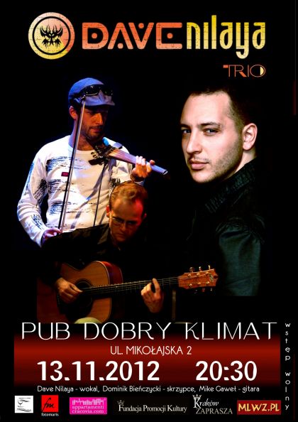 Pub Dobry Klimat ul. Mikołajska 2 zaprasza na koncert włosko-polskiej formacji Dave Nilaya Trio, w składzie:
