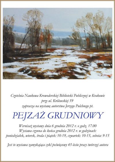 Czytelnia Naukowa Krowoderskiej Biblioteki Publicznej w Krakowie przy ul. Krlewskiej 59 zaprasza na wystaw prac Jerzego Pulchnego. Wernisa wystawy dnia 6 grudnia 2912 o godz. 17.00