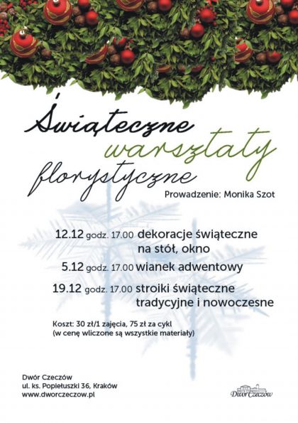 Zapraszamy na witeczne warsztaty florystyczne. w Dworze Czeczw.