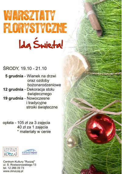 Jeœli szukasz pomysłu na ozdoby choinkowe, inspiracji w dekorowaniu stołu wigilijnego, ciekawych materiałów do zrobienia stroików, to te warsztaty sš właœnie dla Ciebie. Zgłoœ się już dziœ!