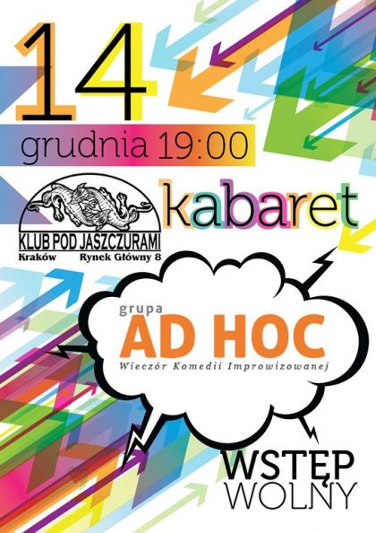 Wieczór komedii improwizowanej w wykonaniu grupy "Ad Hoc" już w najbliższy pištek o godzinie 19.00 na słynnej scenie "Klubu Pod Jaszczurami".