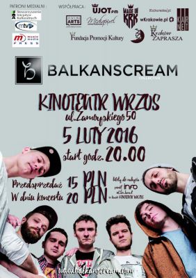 W ostatni piątek tegorocznego karnawału warto wybrać się do kinoteatru „Wrzos” na krakowskim Podgórzu , by poczuć bałkańsko-hiphopowe klimaty. Już 5 lutego zimową atmosferę będzie podgrzewał zespół BALKANSCREAM, dając upust swoim bałkańskim fantazjom.