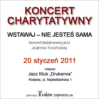 Koncert odbędzie się 20 stycznia 2011 roku w Jazz Klubie „Drukarnia” w Krakowie.