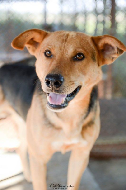 Aron to około 4-5 letni, średniej wielkości pies. Trafił do schroniska z okolicznej wioski, gdzie został znaleziony. Na sobie miał długi kawałek łańcucha i rozcięte ucho. Jaki były jego losy? Niestety nie wiemy.