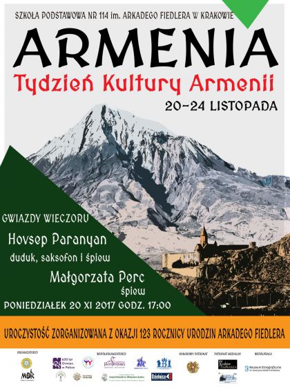 Tydzień Kultury Armenii organizowany z okazji 123 urodzin Arkadego Fiedlera patrona Szkoły Podstawowej nr 114 w Krakowie.
