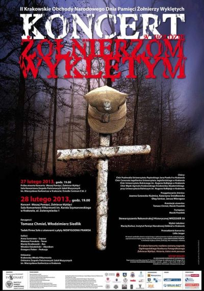 Oddział Instytutu Pamięci Narodowej oraz Stowarzyszenie PASSIONART pragnąc oddać hołd bohaterom oraz przybliżyć sylwetki Żołnierzy Wyklętych młodemu pokoleniu, już po raz drugi zapraszają na koncert w ramach Krakowskich Obchodów Narodowego Dnia Pamięci Żołnierzy Wyklętych. Zrealizowane w zeszłym roku z wielkim rozmachem przedsięwzięcie zgromadziło w Filharmonii im. Karola Szymanowskiego w Krakowie ponad tysiąc osób – widzów i artystów.