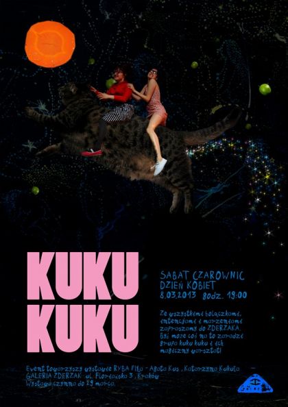 8 marca Galeria Zderzak zamieni się w Magiczny Warsztat pełen bliżej nieokreślonych płynów i substancji. Mieszać, zaklinać i rozlewać będą artystki z Grupy Kuku Kuku: Agata Kus i Katarzyna Kukuła. Przepis na miłość już powstał: kilka kropel smutku, kilka cierpienia, zaślepienia, rozpaczy, euforii z domieszką kropli seksu...Przyjdźcie ze swoimi uczuciami, pragnieniami i potrzebami, a Czarownice z Kuku Kuku przyrządzą dla was wybuchowe mikstury.