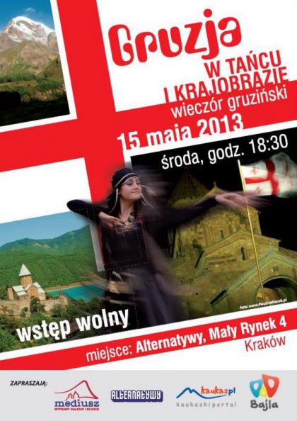 Podczas spotkania w Klubie Alternatywy chcemy podzielić się naszą pasją. Mediusz pokaże zdjęcia robione w Gruzji podczas kolejnych wyjazdów i opowie historie z nimi związane, a Bajla zabierze Was w taneczną podróż w tamte rejony.