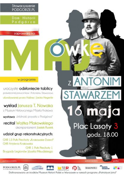 Ten rodzinno-patriotyczny majowy wieczór jest drugim wydarzeniem poświęconym pamięci osoby związanej z Podgórzem. W zeszłym roku Jerzy Donimirski ufundował tablicę poświęconą pamięci wybitnego farmaceuty podgórzanina Michała Ludwika Dobrowolskiego. Fundatorami tablicy poświęconej Antoniemu Stawarzowi są Halina i Jacek Hegerle, a autorem projektu Bogdan Czesak.