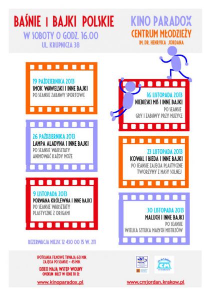CENTRUM MŁODZIEŻY IM. DR. H. JORDANA ZAPRASZA DZIECI NA BEZPŁATNE SPOTKANIA FILMOWE Z CYKLU BAŚNIE I BAJKI POLSKIE.