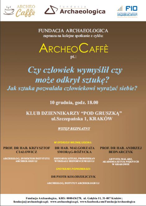 W trakcie trzeciego już spotkania z cyklu ArcheoCaffe zastanowimy się między innymi nad tym, kiedy i dlaczego człowiek zaczął interesować się działalnością twórczą, jakie czynniki miały wpływ na jej kształt oraz co można wywnioskować badając dzieła sztuki z przeszłości.