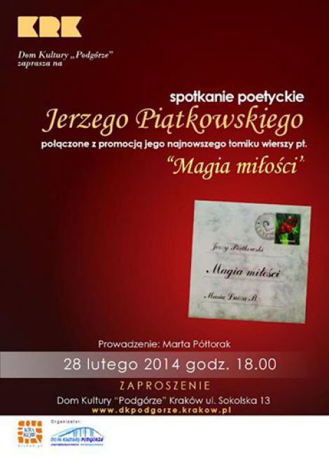 Spotkanie poetyckie Jerzego Piątkowskiego, połączone z promocją jego najnowszego tomiku wierszy pt. "Magia miłości"