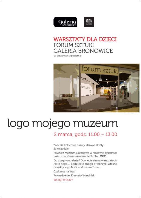 Serdecznie zapraszamy na bezpłatne warsztaty dla dzieci pt. LOGO MOJEGO MUZEUM, które odbędą się w najbliższą niedzielę, 2 marca, godz. 11.00-13.00, w Forum Sztuki, lokalu Muzeum Narodowego w Galerii Bronowice.