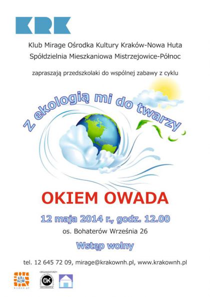 Spotkanie dla przedszkolaków w ramach cyklu Z ekologią mi do twarzy 12 maja o godz. 12.00 w Klubie Mirage Ośrodka Kultury Kraków-Nowa Huta (os. Bohaterów Września 26). W maju przedszkolaki odkryją piękny, fascynujący i tajemniczy świat owadów występujących w przyrodzie. Będą mogły poczuć się jak pszczółki w ulu czy poznać pracę i życie mrówki w mrowisku. Dowiedzą się również jak wielkie znaczenie dla człowieka mają owady.
