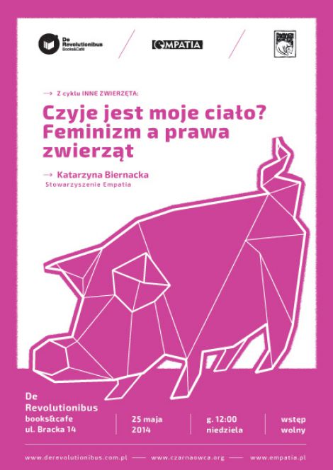 Fundacja Czarna Owca Pana Kota we współpracy ze Stowarzyszeniem Empatia i księgarnią De Revolutionibus. Books&Cafe zaprasza na spotkanie z Katarzyną Biernacką „Czyje jest moje ciało? Prawa zwierząt a prawa człowieka.”