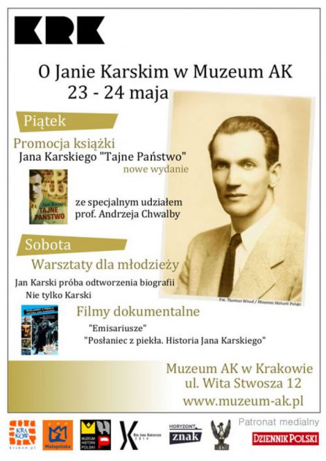 Rezerwacje na warsztaty: kontakt mailowy: rezerwacja@muzeum-ak.pl (wiadomość z dopiskiem "O Janie Karskim") lub telefoniczny pod nr 12 4100765, 12 4100770