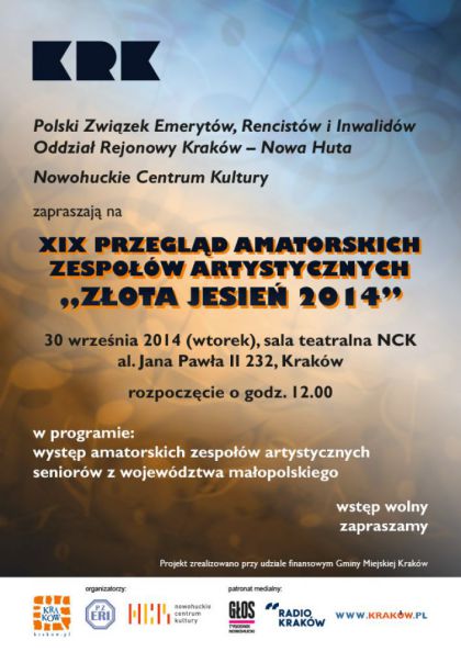 W programie: występ amatorskich zespołów artystycznych seniorów z województwa małopolskiego.