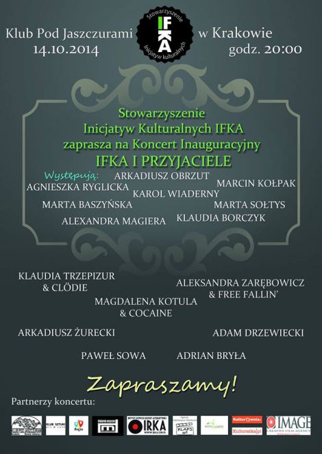 Zarząd i Skład Członkowski Stowarzyszenia Inicjatyw Kulturalnych IFKA zapraszają na Koncert Inauguracyjny „IFKA I PRZYJACIELE”!!!