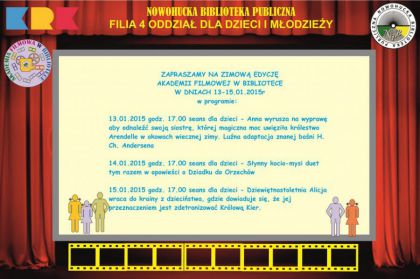 Biblioteka zaprasza na zimową edycję cyklu zajęć o nazwie “Akademia Filmowa w Bibliotece”, zainicjowanego w 2014 r.