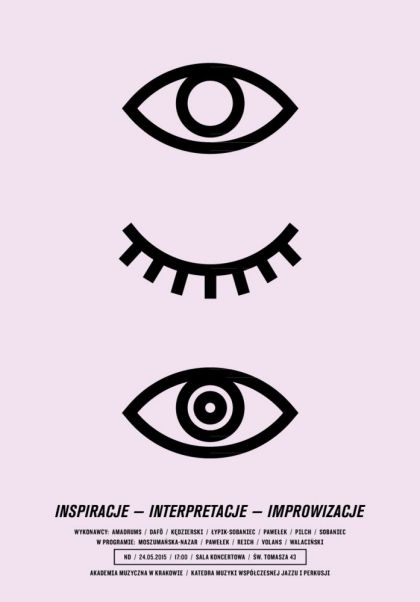W niedzielę 24 maja Wykładowcy Katedry Muzyki Współczesnej Jazzu i Perkusji zapraszają na koncert pt. Inspiracje, Interpretacje, Improwizacje, który odbędzie się o godzinie 17:00 w Sali koncertowej przy ul. św. Tomasza 43. Wykonawcami będą: zespół perkusyjny Amadrums, kwartet Dafô, Piotr Kędzierski, Michał Pawełek, Jan Pilch, Barbara Łypik-Sobaniec, Tomasz Sobaniec. Wstęp wolny.