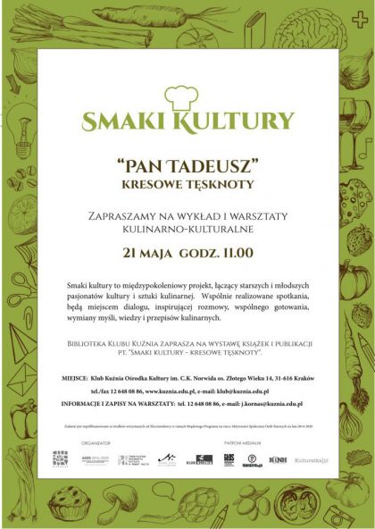 Smaki kultury to międzypokoleniowy projekt, łączący starszych i młodszych pasjonatów kultury i sztuki kulinarnej. Wspólnie realizowane spotkania, będą miejscem dialogu, inspirującej rozmowy, wspólnego gotowania, wymiany myśli, wiedzy i przepisów kulinarnych.