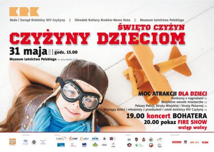 Przed nami 13 edycja festynu rodzinnego Święto Czyżyn. Czyżyny Dzieciom, która odbędzie się 31 maja br. w godz. 15.00-20.30 na terenie Muzeum Lotnictwa Polskiego (al. Jana Pawła II 39). Organizatorzy: Rada i Zarząd Dzielnicy XIV Czyżyny, Ośrodek Kultury Kraków-Nowa Huta oraz Muzeum Lotnictwa Polskiego zapraszają wszystkich mieszkańców Kraków, a zwłaszcza Czyżyn do wspólnego świętowania.