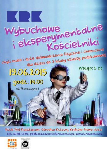 Klub Pod Kasztanami Ośrodka Kultury Kraków-Nowa Huta (ul. Płoszczyny 1) zaprasza dzieci na zajęcia eksperymentalne, które odpowiedzą na wiele pytań dotyczących zjawisk zachodzących w otaczającym nas świecie. Odbędą się one 19 czerwca br. o godz. 14.00. Dzieci poprzez konkretne eksperymenty i działania poznają właściwości wody, powietrza i innych gazów, a także zobaczą reakcja utleniania i redukcji, nauczą się rozpoznawać kwasy, zasady i kryształy.
