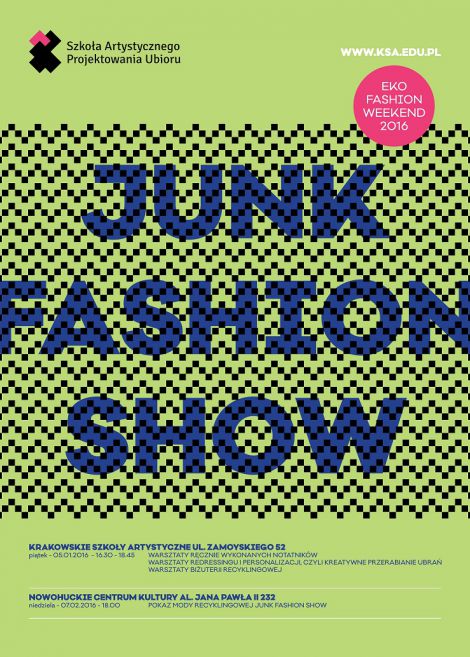 W dniach 5-7 lutego 2016, w Krakowie odbędzie się Eko Fashion Weekend organizowany przez Krakowskie Szkoły Artystyczne, którego finałem będzie pokaz ubrań stworzonych z papieru Junk Fashion Show (7.02). Gośćmi specjalnymi będą Marcin Giebułtowski – projektant biżuterii oraz Michał Zaczyński – znany bloger i krytyk mody.