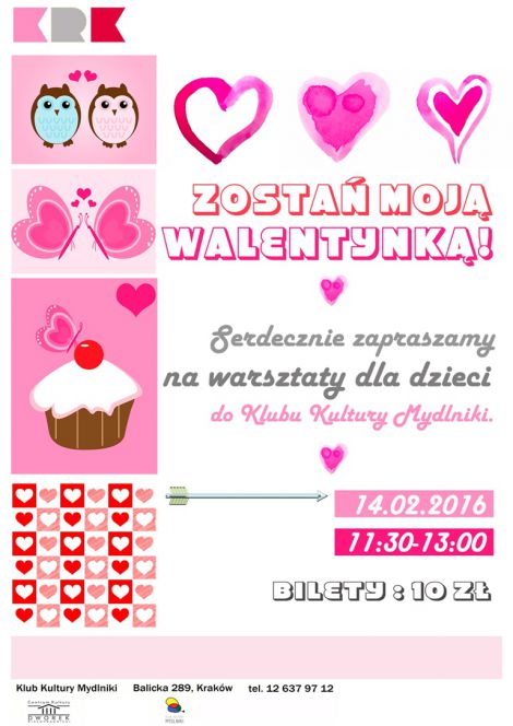 Zostań moją Walentynką- warsztaty dla najmłodszych w Klubie Kultury Mydlniki