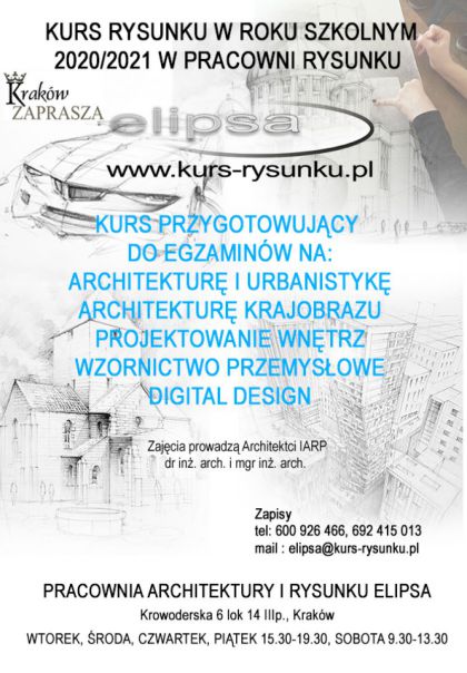 tel. 692 415 013, 600 926 466, e-mail: elipsa@kurs-rysunku.pl