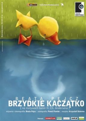 Spektakl powstał na motywach baśni H. Ch. Andersena, a właściwie powstaje w trakcie pisanie bajki przez autora. W domu pana Andersena wszyscy domownicy chodzą na palcach, żeby nie przeszkadzać w powstawaniu kolejnej bajki. A bajki nie da się zwyczajnie napisać. Bajka musi się sama urodzić. Albooo… wykluć. Więc może z jajka? Skoro z jajka, to bohaterem zostaje brzydkie kaczątko, które po wielu bolesnych doświadczeniach z szarego pisklęcia przemieni się w pięknego łabędzia. Ta naturalna w przyrodzie kolej rzeczy stanie się w teatrze źródłem poetyckiej metafory. Źli ludzie, ukryci pod kostiumami zwierzęcych postaci, dostrzegli tylko szarą powierzchowność głównego bohatera. Dopiero mądre i dobre łabędzie odkryły w nim wewnętrzne piękno.