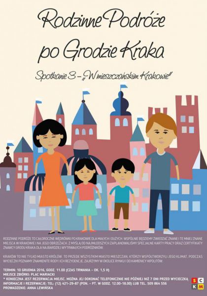 Rodzinne podróże to całoroczne wędrówki po Krakowie dla małych i dużych. Wspólnie będziemy zwiedzać znane i te mniej znane miejsca w Krakowie i na jego obrzeżach. Z myślą od najmłodszych zaplanowaliśmy specjalne karty pracy oraz certyfikaty Znawcy grodu Kraka dla najbardziej wytrwałych podróżników.