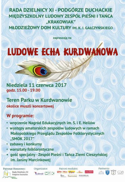 Międzyszkolny Ludowy Zespół Pieśni i Tańca „Krakowiak” we współpracy z Młodzieżowym Domem Kultury im. K.I. Gałczyńskiego organizuje wydarzenie plenerowe LUDOWE ECHA KURDWANOWA.