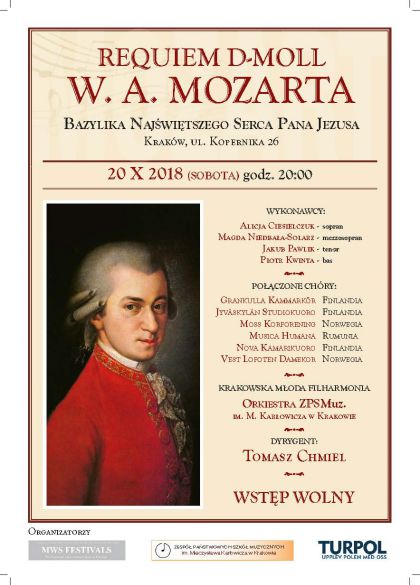W sobotę, 20 października 2018 o godz.20:00 odbędzie się w krakowskiej Bazylice Najświętszego Serca Pana Jezusa koncert Requiem Wolfganga Amadeusza Mozarta, jednego z największych arcydzieł tego genialnego kompozytora.