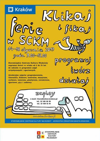 Staromiejskie Centrum Kultury Młodzieży zaprasza dzieci w wieku od 6 do14 lat do udziału w programie zajęć artystycznych i sportowych od 14 do 18 stycznia 2019 r. w godzinach od 9.00 do 15.00.