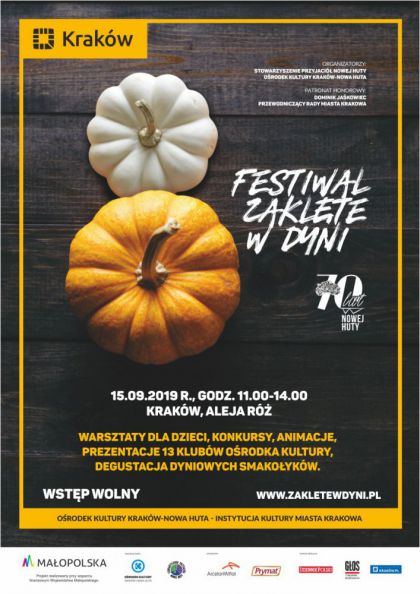 Organizatorami VIII Festiwalu Zaklęte w Dyni są Stowarzyszenie Przyjaciół Nowej Huty i Ośrodek Kultury Kraków-Nowa Huta. Podczas wydarzenia będzie można zapoznać się z ofertą kulturalno-oświatową 13 klubów Ośrodka Kultury dla dzieci, dorosłych i seniorów na nowy rok szkolny.