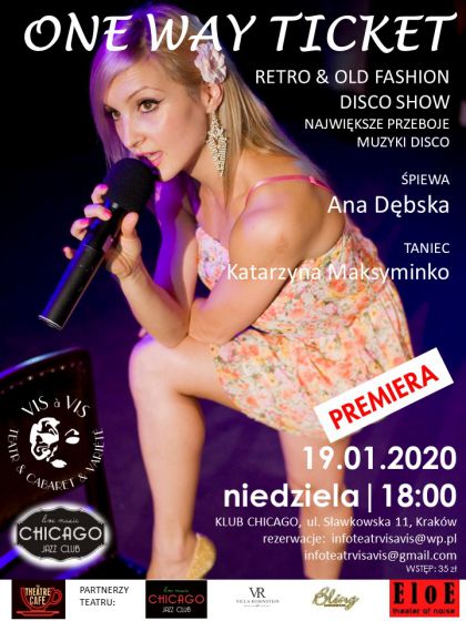 W swoim popisowym DISCO SHOW największe przeboje muzyki DISCO i POP zaśpiewa dla Państwa artystka Teatru VIS A VIS, aktorka scen muzycznych - obdarzona niesamowitym głosem ANA DĘBSKA.