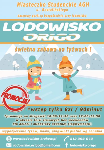 Zapraszamy Państwa do skorzystania z naszej oferty, lodowisko mieści się u zbiegu ulic Piastowskiej i Reymonta na Miasteczku Studenckim AGH( róg ulicy Piastowskiej i Reymonta).