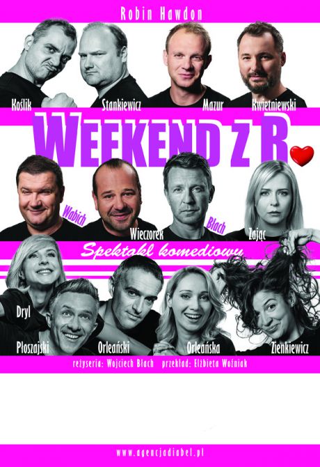 Weekend z R. to mistrzowska farsa Robina Hawdona pełna znakomitych kreacji. Londyn. Lata dwudzieste. Clarise i Roger to małżeństwo szczęśliwe, spełnione, odnoszące sukcesy na każdej płaszczyźnie. Rozumieją się bez słów, nie widzą świata poza sobą. Lecz to tylko pozory. Przepełnieni są miłością, ale czy tylko do siebie? Okazuje się że "ta" miłość może być ogromnym problemem. Gdy nagle wyjazd służbowy Rogera zostaje odwołany, kompletnie psuje to szyki jego żonie. Mąż w domu to nie lada wyzwanie dla Clarise, która miała zaplanowany ten czas w najdrobniejszych szczegółach. Cała sytuacja wywołuje szereg nieporozumień i komplikacji przez co akcja nabiera zawrotnego tempa. Teraz Clarise musi wykazać się niebagatelną wyobraźnią i pomysłowością, żeby utrzymać swoją tajemnicę przed mężem do końca.