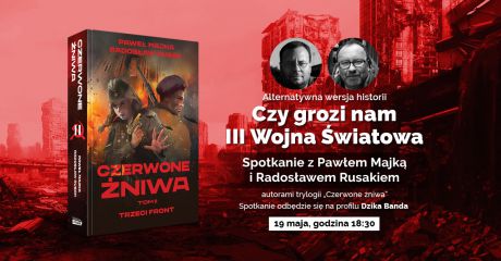 Zapraszamy na spotkanie z Pawłem Majką i Radosławem Rusakiem, które odbędzie się na profilu Znak Horyzont oraz Dzika Banda (https://www.facebook.com/dzikabandaPL/). Autorzy bestsellerowej trylogii opowiedzą o drugim tomie "Czerwonych żniw".