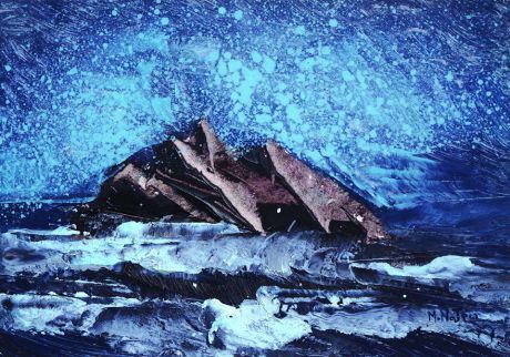 Na obrazy Magdaleny Nałęcz patrzę więc przez przezroczystość zwykłych ziemskich synonimów "otchłani". Dal, ocean, nieprzebytość, niezgłębioność, bezdeń, bezmiar, bezkres, niebotyczność. Dla mnie, to koniec metafizycznego tekstu prawdopodobnie utajonego w tych kompozycjach ! Podziwiam natomiast ich "zagęszczoną" formę, "kulturę" malarską tych płócien.