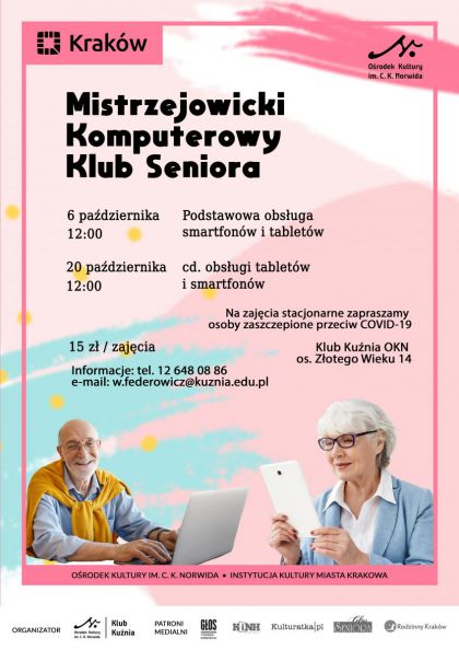 Zajęcia w ramach Mistrzejowickiego Komputerowego Klubu Seniora. Na spotkaniu uczestnicy będą mieli okazję spróbować swoich sił w obsłudze smartfonów i tabletów. To idealny początek by zacząć swobodnie korzystać z nowych technologii.