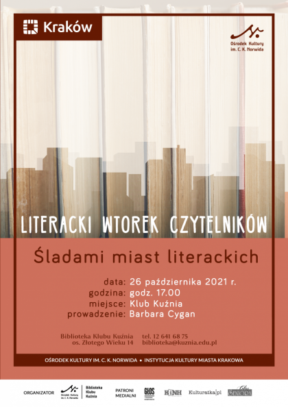 Literatura bywa przetworzeniem miejsc, z którymi pisarze są emocjonalnie związani. Miejsca te wpływają na osobowość pisarzy, ale pośrednio również na nas, czytelników. Zapraszamy na Literacki Wtorek Czytelników do kilku miast, które istnieją może nawet bardziej w literaturze niż w rzeczywistości. Spotkanie poprowadzi Barbara Cygan.