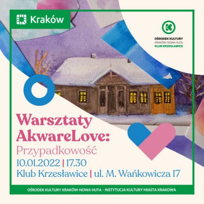 Czy są tu jacyś artyści, plastycy, malarze albo miłośnicy malowania? Zapraszamy Was do Klubu Krzesławice na kolejną odsłonę AkwareLovych Warsztatów o tajemniczym tytule „Przypadkowość”. W trakcie tworzenia zimowych pejzaży skorzystamy z techniki akwarelowej oraz kolażu. Docenimy „przypadkowość” i jej funkcję w akwareli oraz będziemy eksperymentować z różnymi fakturami i efektami np. przy użyciu soli. Nie będzie nudno! Warsztaty odbędą się 10 stycznia o godz. 17.30.