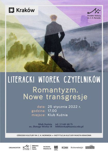 „Owszem, prawda jest taka, że i ja, za romantykami, kreśliłam apologię polskiego, romantycznego szaleństwa. I ja idealizowałam Polaków jako naród jednolicie bohaterski. I ja widziałam w naszym mesjanizmie przede wszystkim słuszną gloryfikację polskiego cierpienia” – mówiła Maria Janion w rozmowie z Kazimierą Szczuką w 2013 r. Jak zmieniało się widzenie – nie tylko polskiego – Romantyzmu w następstwie współczesnych zmian historycznych i cywilizacyjnych? Zapraszamy na dyskusję poświęconą romantycznym transgresjom, która odbędzie się w ramach cyklu Literacki Wtorek Czytelników.